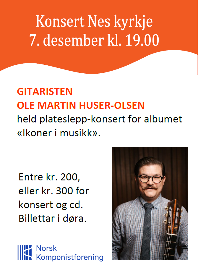 7. desember kl. 19.00 Nes kyrkje: Gitaristen Ole Martin Huser-Olsen held plateslepp-konsert for albumet "Ikoner i musikk".