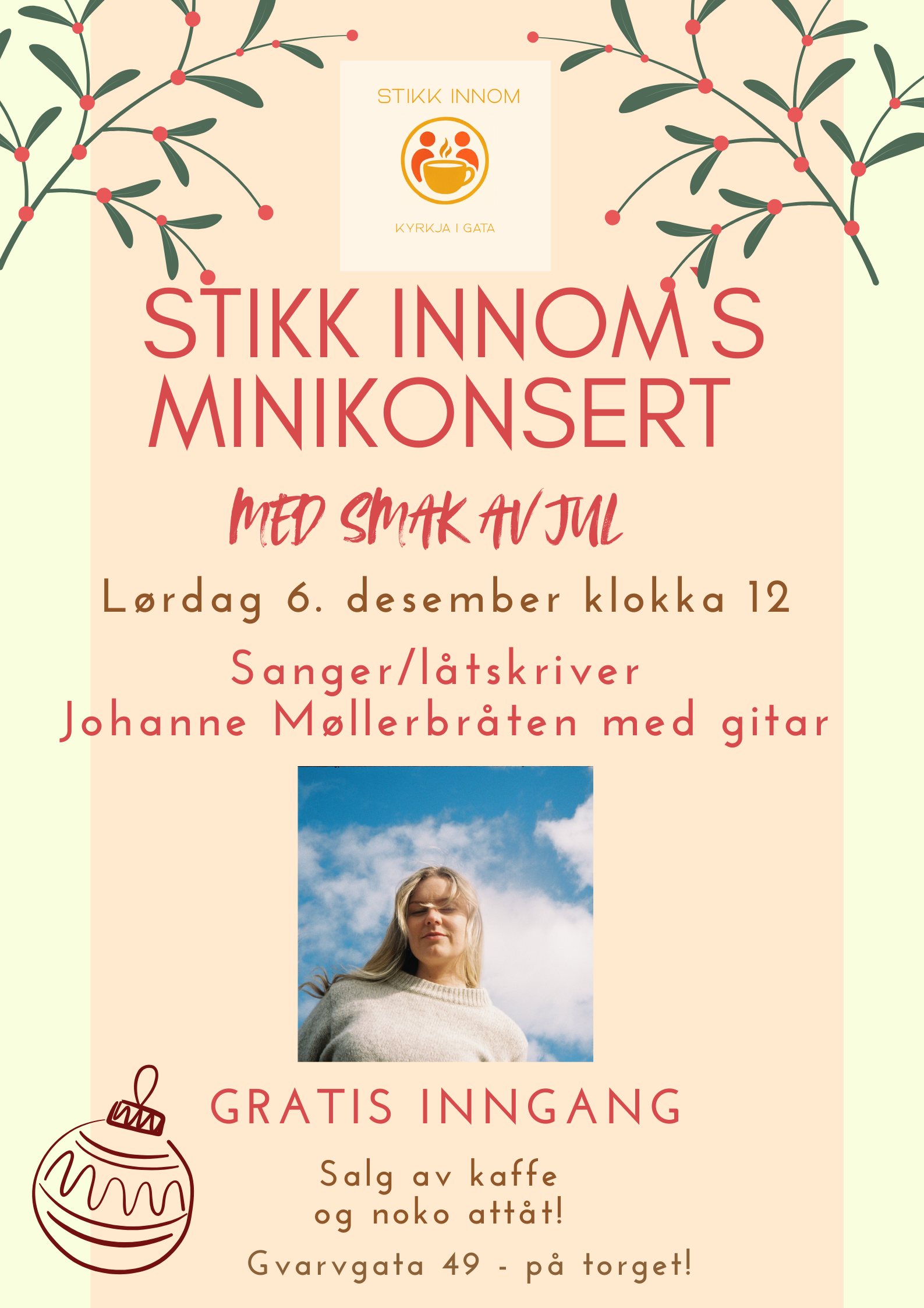 6. desember kl. 12.00 Gatekyrkja: Minikonsert med Johanne Møllerbråten. Med smak av jul.