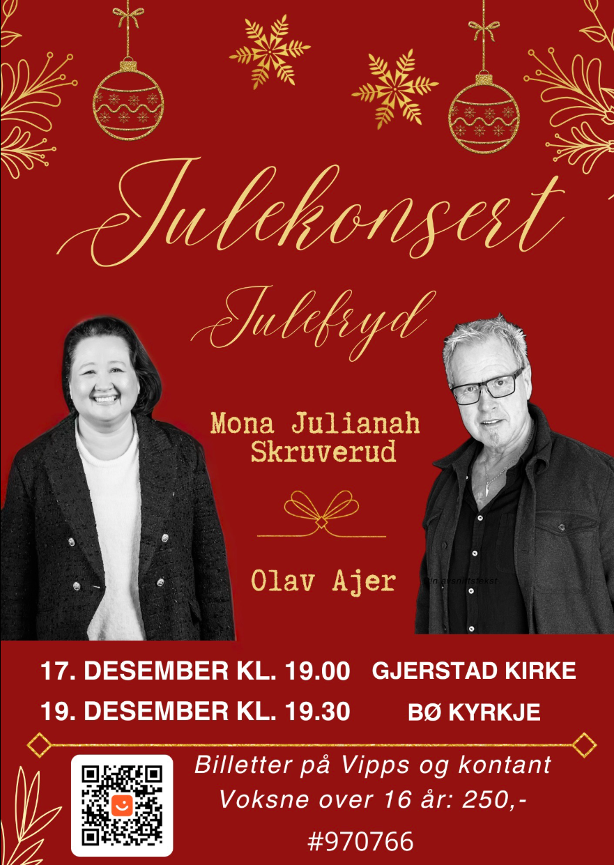 19. desember kl. 19.30 Bø kyrkje: Julefryd med Mona Skruverud og Olav Ajer
